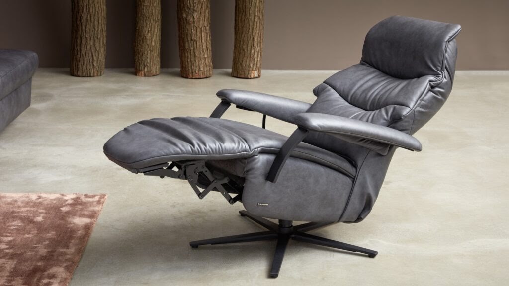 Bij verstelling van de rugleuning bewegen de armleuningen mee, dankzij de aangebrachte scharnieren. Hierdoor vinden onderarmen en ellenbogen altijd de juiste ondersteuning, zoals bij veel relaxfauteuils niet het geval is.